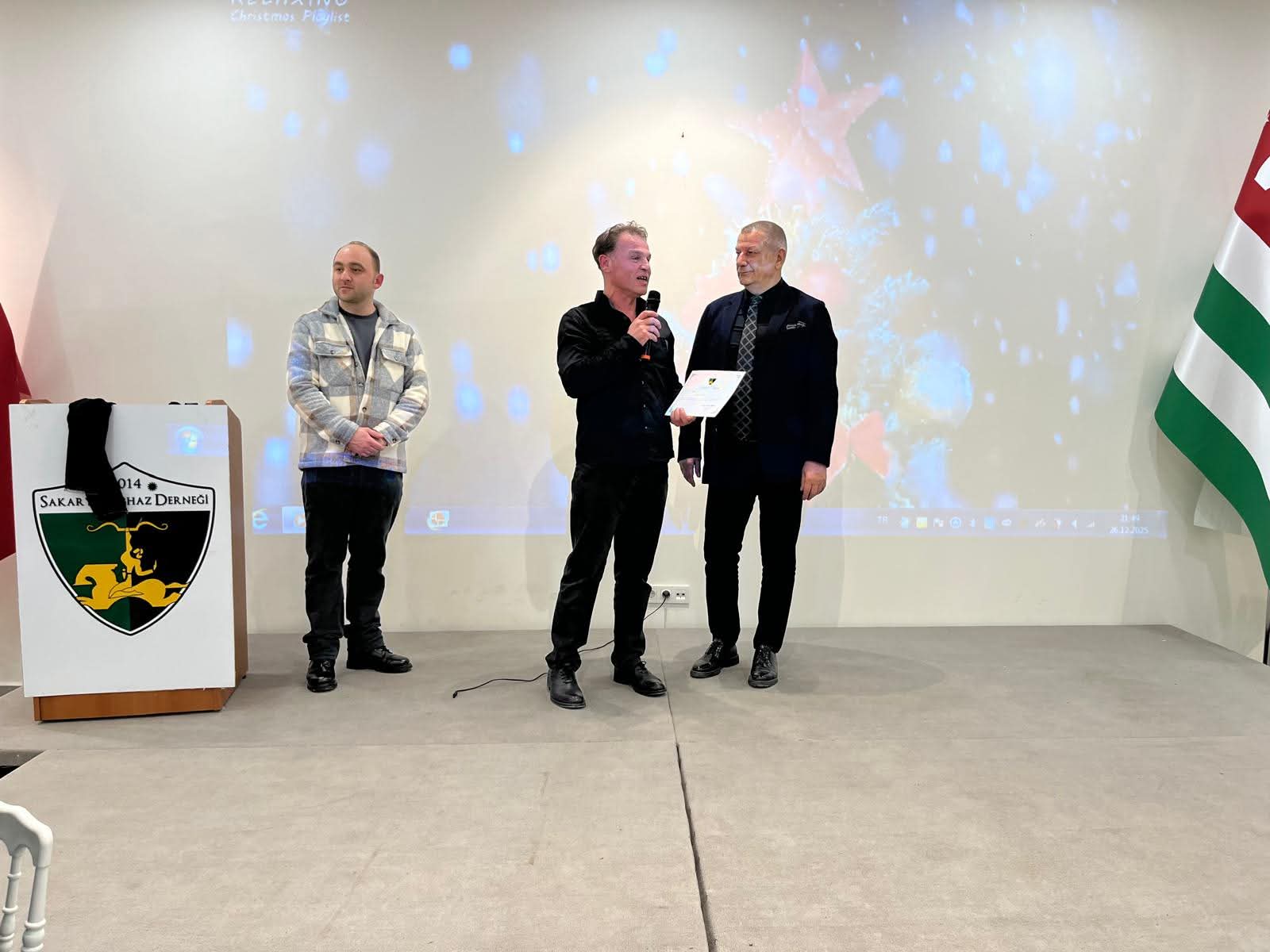 26 12 2025 Yıl sonu birlik ve dayanışma HALUJ GECE’miz Sakarya Abhaz Derneğimiz Başkanı Oral Kobaş Bganba açılış konuşması, derneğin Akustik Ses Sistemi desteği veren Ayhabılarımıza (Yusuf Yıldırım Gucger, Orhan Hurhmal) teşekkür belgesi takdimi, Aydın Bayırlı Maan’a Meslek Günleri Tanıtım günü teşekkür belgesi, Yıldızlar Dans Grubu çocuklarımıza yılbaşı pastası; Rayda Guşa dans ekibimizin yarı yıl resitali, yılbaşı çekilişi ve AVRAŞA ile sona erdi.