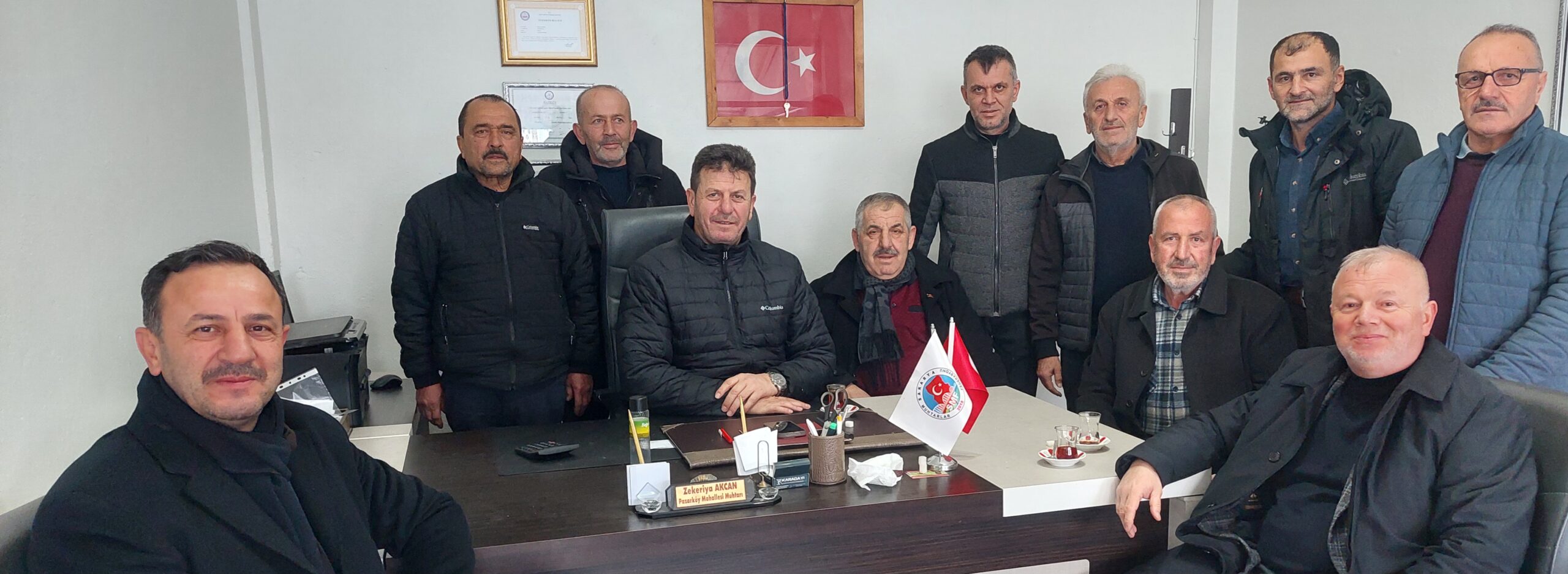 PAZARKÖY MAHALLE MUHTARI Zekeriya Akcan,Belediye Meclis üyesi Selim Kurt,Şoförler Odası Başkanı Şaban Özdemşr,muhtarlar dernek Başkanı Ahmet Savaş,Kızılay Başkanı Mustafa Birincioğlu,mahalle sakinleri,tatlı sohbet sonrası kameraya poz verip,birlik görüntüsü verildi.